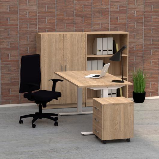Monterad hylla för kontor, arkiv, och där förvaring behövs Ryggen är 18 mm tjock för att skapa en stabil och gedigen möbel vilket även gör att man kan använda förvaringsserien som en rumsdelare med en synlig rygg. Välj olika höjder, djup, antal hyllplan och med eller utan dörrar samt olika färger. Skåpet är tillverkat i tålig laminat som är färgbeständigt år efter år och lätt att göra rent. Låsen har två styck unika nycklar. 800x418x1320 mm. Mått: 800x420x1320 mm