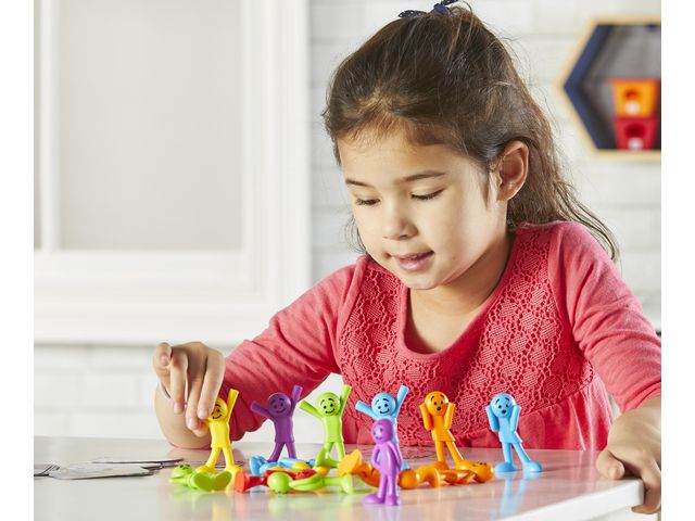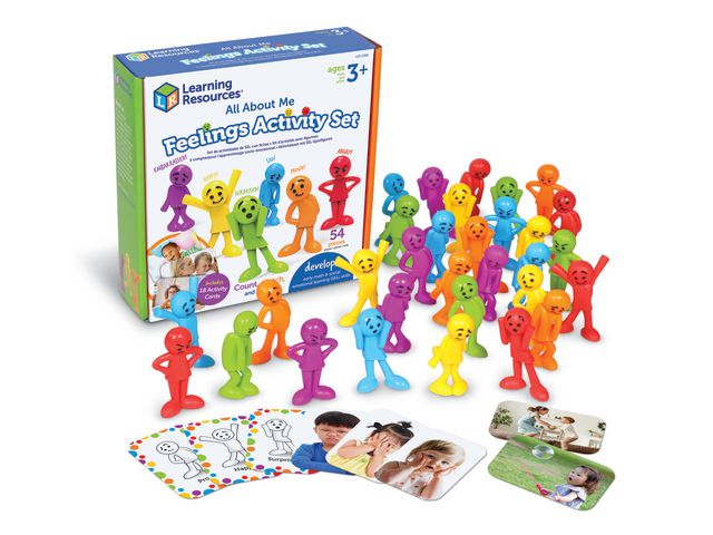 Lär barnen att prata om sina egna känslor och läsa av andras känslor. 36 figurer i 6 färger med 6 olika känslouttryck och 18 aktivitetskort ingår. När man inte pratar om känslor kan man istället sortera och matcha efter form, färg och känsla. Antal: 54 delar Material: PVC, utan förbjudna ftalater. Rekommenderas från 3 år