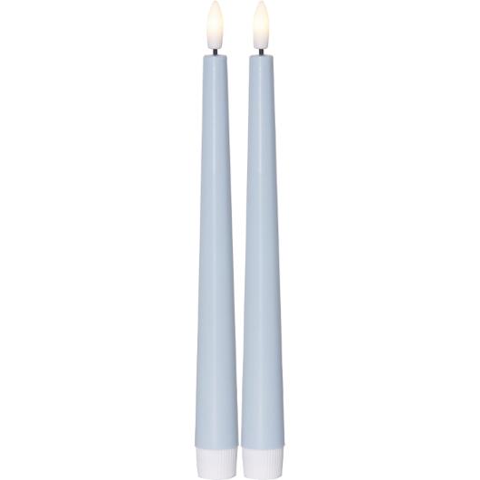 OBS! Påskartiklar för 2026 preliminär leverans fr.o.m. vecka 7! Flamme Candy - batteriljuset som lyser upp varje rum, tryggt och stilrent. Flamme Candy antikljus är ett batteriljus som finns i flera färger, gjord av plast och har en brinntid på 400 h. Den lyser med varmvitt sken och har en realistiska låga Flamme. Med inbyggd timer lyser den i 6 timmar. Drivs av AA-batterier - dessa ingår ej. Färg: blå Höjd: 26 cm Brinntid ca 200 h Timer: 6 h på, 18 h av, repeterande 2x 2 batterier AA ingår ej För inomhusbruk
