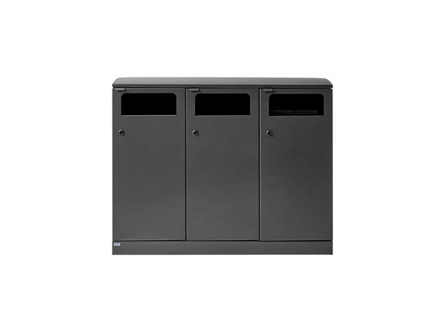 Elegant avfallsbehållare i stilren och praktisk design, avsedd för användning utomhus. Gör det enkelt att sortera avfall på alla uteplatser, både i parker, på gågator och i utomhusområden på arbetsplatsen. Tillverkade av högkvalitativt material som tål väder och vind, vilket gör dem perfekta för användning utomhus i alla väder. Avfallsbehållaren är utformad med ett enkel inkast, kommer med en integrerad stark påshållare som kan dras ut när påsen behöver bytas. Försedd med en frontdörr för ergonomiskt korrekt tömning utan tunga lyft. För att uppnå en lång livslängd och minimalt underhåll är avfallsbehållaren tillverkad av galvaniserat och rostfritt stål. Kärlet är förberett för infästning i underlaget så att det inte kan flyttas. Obs: Material och utrustning för infästning ingår ej. Bica Model 713 kan kombineras med andra Bica-modeller i samma djup. Mått (H×B×D): 95 x 120 × 40cm Mått inkast: 30 x 12cm Färg: svart antracit Material: stål Kapacitet: 3 x 100 liter Nettovikt: 92,99kg Bica Modell 713 Piktogram ingår ej EU Ecolabel licensnummer: DK/049/064