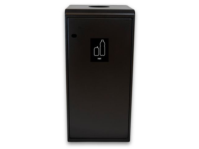 Stilrent kärl för sortering av exempelvis glas, metall och plastförpackningar. Stilrent och robust sorteringskärl, lock med runt hål. Utrustad med justerbara tassar och dörrfront för ergonomiskt uttag av 125-literssäck. Funkar perfekt att kombinera flera kärl på rad för olika avfall. För inomhus- och utomhusbruk. Pulverlackad och tillverkad i Sverige av återvunnet svenskt stål. Dekaler som medföljer: färgat glas, ofärgat glas och pant. Tillval vid köp av 12 st valfri färg på kärlet (280 st olika nyaner). L: 395 mm B: 385 mm H: 810 mm Vikt: 17.5 kg Material: stål 98,7 % pre-consumer och 1,3 % post-consumer
