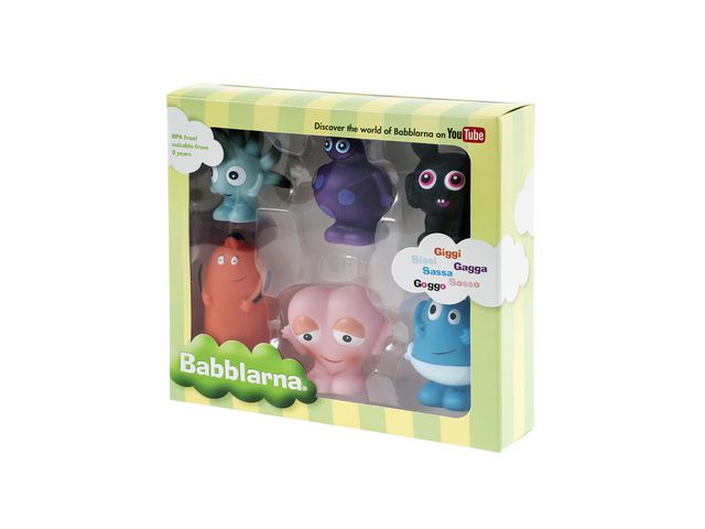 Babola Salabim! Trolla med Babblarna och säg hej till Gagga, Giggi, Goggo och Sassa, Sissi, Sosso! Sex nya härliga figurer att leka och uppleva spännande äventyr med. Gör leken och språkträningen extra rolig med Babblarnas plastfigurer. Babblarna som plastfigurer har nu blivit tolv till antalet. Runda, mjuka och färgglada blir Babblarnas figurer en klar favorit i leksakshyllan. Låt fantasin flöda och se fram emot timmar av nyttig och skojig lek. Rekommenderad ålder: från 0 år Antal: 6 st Mått: 7-10 cm Material: PVC fri, fri från BPA och ftalater CE