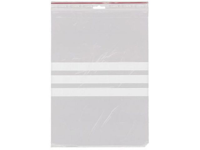 Blixtlåspåse tillverkad av LDPE med 5mm eurohål för upphängning och tre vita skrivfält. Med kraftig blixtlåsförslutning och röd linjemarkering. Livsmedelsgodkända. 100 påsar per bunt, 1000 påsar per förpackning. Storlek: 230x320mm (innermått) Modell: T-78 Tjocklek: 50 mikron Hålning: Eurohål Volym: 3,5 liter Livsmedelsgodkänd