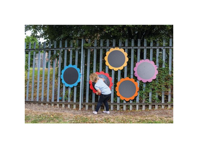 5st blomformade färgglada griffeltavlor. Fäst dem mot vägg, stängsel eller staket och gör lekplatsen till ett roligt och spännande område att utforska. Förstansade hål för upphängning. (fästen ingår ej) Mått: 50cm diameter