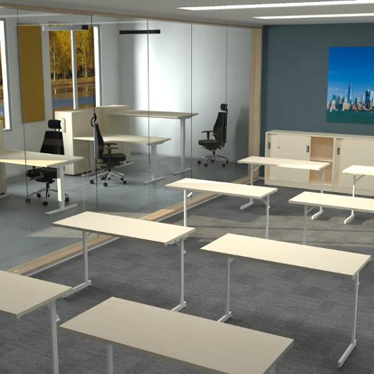 Ett komplett skrivbord med svensktillverkat höj- och sänkbart 2-motorigt stativ Ett komplett skrivbord med svensktillverkat höj- och sänkbart 2-motorigt stativ med 25 mm tjocka rektangulära skrivbordsskivor. Skrivbordet har steglös höjdreglering mellan 630-1290 mm, vilket ger en slaglängd på hela 660 mm som gör det lätt för användaren att skapa en ergonomisk arbetsmiljö. Fristående ben ger optimal rörlighet i och med obegränsat benutrymme. Skulle behoven ändras framöver så är stativet flexibelt i sidled flexibelt mellan 1150 – 1740 mm, detta innebär att samma stativ kan användas på skivor mellan 1200 – 2000 mm. Stativet är kvalitets och miljöcertifierade. Steglös höjdreglering mellan 630-1290 mm 2 motorer Ljudnivå < 42 dBa Testad enligt: EN 527-2:2016 Testad enligt: ISO 21016 CE-märkt