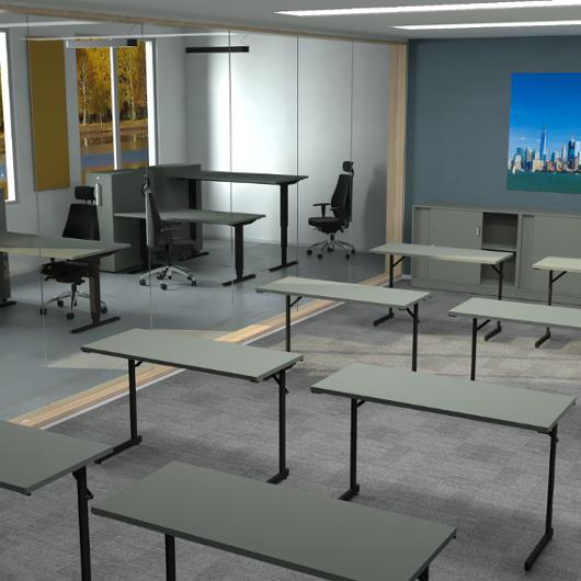 Ett komplett skrivbord med svensktillverkat höj- och sänkbart 2-motorigt stativ Ett komplett skrivbord med svensktillverkat höj- och sänkbart 2-motorigt stativ med 25 mm tjocka rektangulära skrivbordsskivor. Skrivbordet har steglös höjdreglering mellan 630-1290 mm, vilket ger en slaglängd på hela 660 mm som gör det lätt för användaren att skapa en ergonomisk arbetsmiljö. Fristående ben ger optimal rörlighet i och med obegränsat benutrymme. Skulle behoven ändras framöver så är stativet flexibelt i sidled flexibelt mellan 1150 – 1740 mm, detta innebär att samma stativ kan användas på skivor mellan 1200 – 2000 mm. Stativet är kvalitets och miljöcertifierade. Steglös höjdreglering mellan 630-1290 mm 2 motorer Ljudnivå < 42 dBa Testad enligt: EN 527-2:2016 Testad enligt: ISO 21016 CE-märkt
