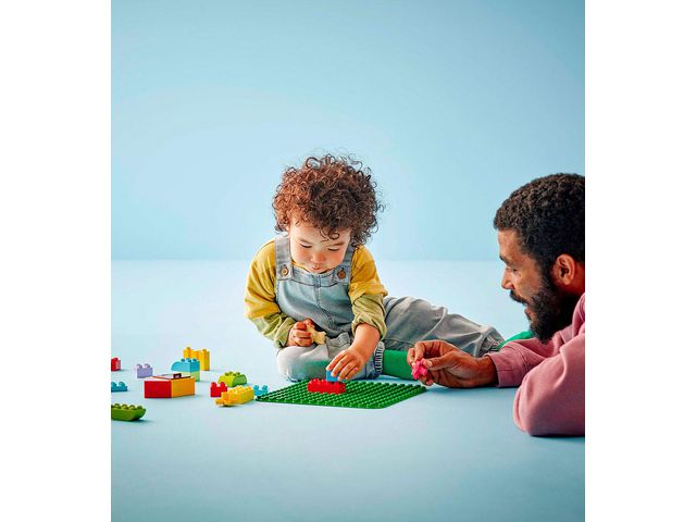 Smart LEGO® DUPLO byggplatta i grön. LEGO® DUPLO byggplattan är fyrkantig och ger gott om plats så att barnet verkligen kan expandera med sina konstruktioner och utöka sin LEGO® DUPLO-värld. Att leka med LEGO® DUPLO utvecklar barnets fantasi och kreativitet och stärker finmotoriken. Mått: 25 x 25cm (16 x 16 knoppar) Rekommenderad ålder: från 18månader CE