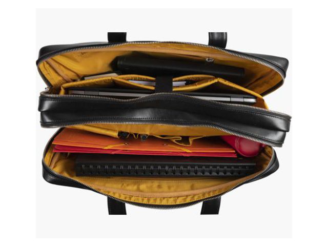 Med sitt bekväma handtag kan väskan bäras i handen, men också på axeln tack vare den justerbara axelremmen. I linje med den sobra och eleganta stilen i Exactive-sortimentet kommer läderbagaget att förföra aktiva människor som letar efter kvalitet och chic till bästa pris. Exactive Leather väska med dubbla fack är tillverkad av nötläder Ett högklassigt material som är både vatten- och slitstarkt Har många fack för bärbar dator, surfplattor, filer, anteckningsböcker och datortillbehör På insidan är facket för den bärbara datorn förstärkt för optimalt skydd Den har en ficka som också är förstärkt för att bära en surfplatta En ficka med dragkedja för olika tillbehör Arkivfacket har två arkivområden, en stor ficka med dragkedja och flera ställen där du kan förvara pennor, kort, smartphones och smartphonetillbehör På utsidan har väskan en stor ficka med dragkedja Den har en ögla på baksidan för att föra väskan över ett teleskopiskt bagagehandtag