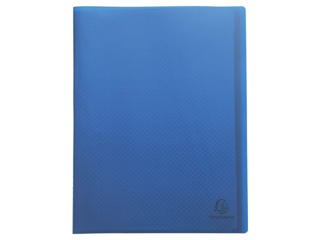 Opak demobok av halvstyv polypropen i A4-format. Demobok från Exacompta med kapacitet för upp till 100 visningar (50 fickor). Tillverkat av halvstyv polypropen (PP) med en tjocklek på 0,4 mm och en kornig, transparent yta som underlättar insättning och hantering av dokument. Materialet är slitstarkt och ger god insyn samtidigt som det skyddar innehållet. Passar för A4-format och är lämpligt för presentationer, arkivering och daglig dokumenthantering. Varje ficka rymmer två sidor – fram- och baksida. Produkten är certifierad enligt Blue Angel. Format: A4 Antal sidor: 50 (100 visningar) Färg: blå Material: PP Blue Angel 100% Post consumer återvunnen plast