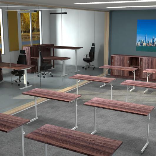 Litet smidigt och smart fällbord för konferensrum, utbildningssalar, mässor, möten, fester och vad skolor Skiva i stryktålig och lättskött laminat. Plocka fram, ha uppe eller plocka ner igen. Bygg som du vill genom att sätta ihop borden och låt bara fantasin begränsa vilka möjligheter som finns. Fördelen med T-ben som detta bordet har är att det är lätt att ha hela stolen innanför eller om man vill ha lite mer avstånd så ta bara ett stolsben utan benet så får man mer utrymme men ända har det lilla bordet. Mått: 1200x500x715x18 mm