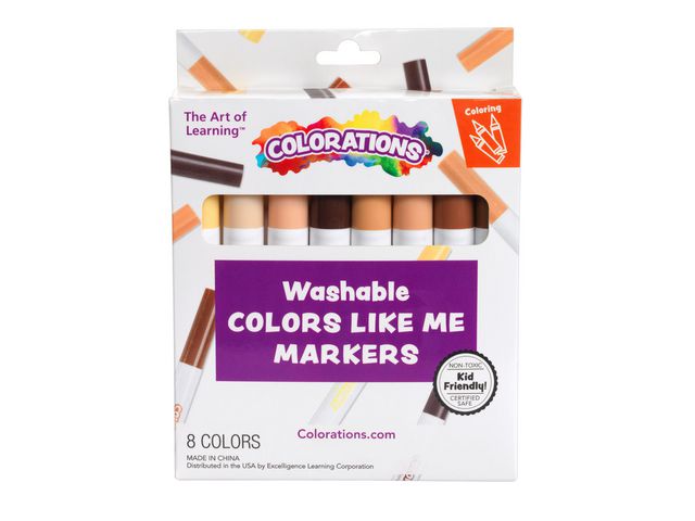 Fiberpenna med 8 olika hudtoner. Perfekta för mångfaldsprojekt. Alla Colorations®-produkter är certifierade enligt ASTM-D4236 för icke-toxicitet. Bläcket kan tvättas från de flesta ytor. Fiberpennan är lätt att greppa för små händer. Antal: 8st Mått: längd 13,5cm Diameter: 1,5cm PVC-fri