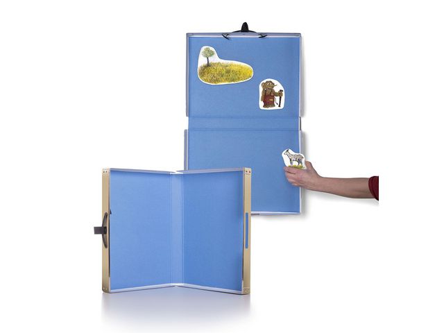 Portabel sagoväska som inspirerar till berättande av flanosagor. Insidan av väskan är klädd med ljusblå filt för att enkelt fästa flanobilder och berätta valfri flanosaga. Ingående råvara FSC-märkt. Mått: 44 x 32 x 6cm Tyget inuti väskan är OEKO-TEX certifierat, klass 1 Rekommenderad ålder: från 0 år CE