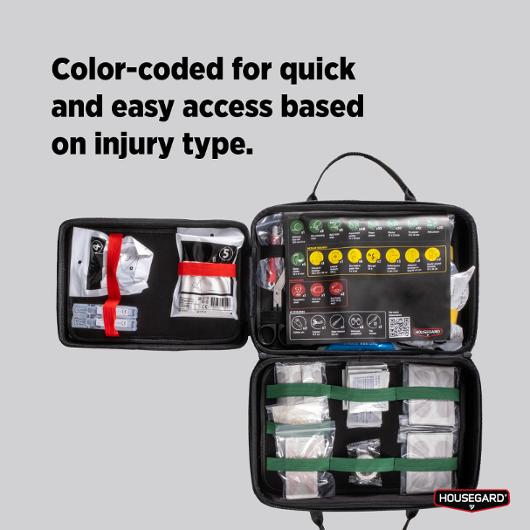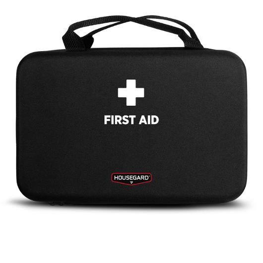 Housegard Premium är en omfattande första hjälpen-väska som täcker allt från små sår och brännskador till större skador, ögonirritation och akuta nödsituationer. Housegard Premium är en omfattande första hjälpen-väska utformad för att hantera allt från mindre sår till allvarliga skador och akuta situationer. Med sina 152 delar är den ett komplett kit för sårvård, brännskador, ögonirritation och mycket mer. Väskan är anpassad för både små och stora skador, inklusive ögonproblem, och innehåller viktiga komponenter som andningsmask, första hjälpen-filt och ögondroppar. Tack vare en tydlig färgkodning hittar du snabbt rätt utrustning och kan agera direkt när varje sekund räknas. Perfekt att ha hemma, på resan eller för den som vill vara förberedd på allt. Housegard Premium ger dig tryggheten att kunna ge snabb och effektiv första hjälpen när det verkligen behövs. Med 152 delar är denna väska särskilt anpassad för den som vill vara extra förberedd. Den innehåller både vanliga förbandsmaterial och specifika produkter för ögonvård samt livräddande utrustning som andningsduk och överlevnadsfilt. Innehåll: Småsår: 1 rulle häfta (1,25 cm x 5 m) 6 hudrengöringsservetter 6 NaCl 0,9% koksaltlösning i engångspipett 40 vattentåliga plåster (72 x 19 mm) 10 fingerplåster 20 plåster (72 x 25 mm) 10 PU-plåster (72 x 19 mm) 20 barnplåster Medelstora sår: 5 skavsårsplåster (62 x 42 mm) 1 triangelbandage (136 x 96 x 96 cm) 1 kylpåse, medium (100 g) 6 torra kompresser i pappersfilm (5 x 5 cm) 2 brännskadegel (3,5 g) 3 rullar gasbinda (8 cm x 3 m) 8 självhäftande bandage i påse (10 x 6 cm) 2 sterila sårförband (10 x 16 cm) Stora sår: 1 andningsmask för mun-till-mun-metoden 1 första hjälpen-filt 2 ögondroppar (NaCl 0,9% 15 ml) Tillbehör: 2 säkerhetsnålar 1 sax (12,7 cm) 1 metallpincett (8,8 cm) 1 par puderfria handskar 1 fästingborttagare