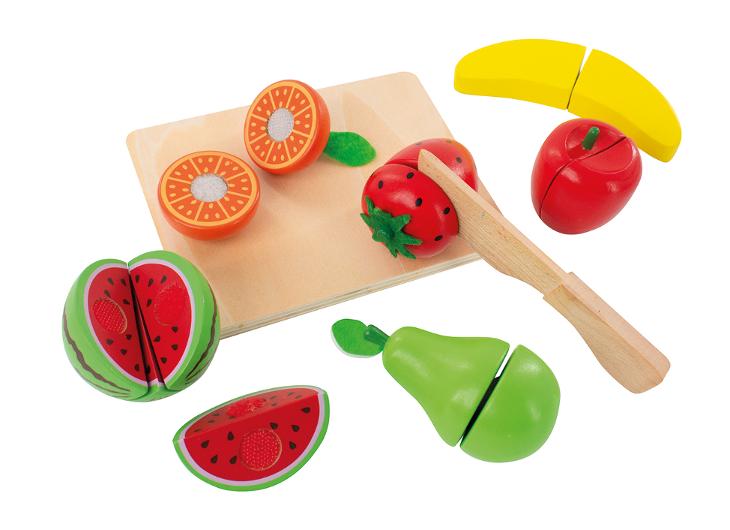 Lekfullt frukt- och grönsakset – utveckla finmotorik och fantasi på ett säkert sätt. Set med 8 delar av frukt och grönsaker perfekt för att stimulera barns fantasi och lärande. Med medföljande skärbräda och kniv kan barnen öva på att skära helt riskfritt, samtidigt som de lär sig om olika livsmedel. Idealisk för förskolor och lekrum där sortering, rollek och finmotorisk utveckling står i fokus. Innehåller 8 frukt- och grönsaksdelar Skärbräda: 15,2 × 12 × 0,7 cm Kniv: 14 × 2,5 × 0,9 cm Fruktens mått: längd 4–12,5 cm, bredd 3–6 cm, höjd 3–8 cm Material: Trä Rekommenderad ålder: från 3 år FSC 100%