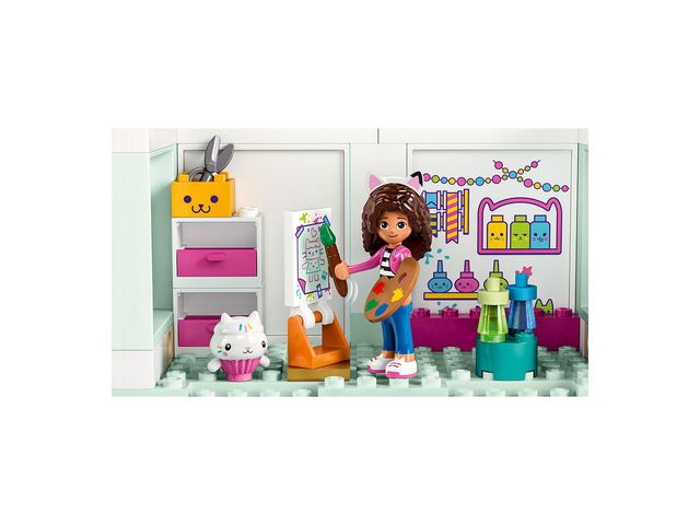 Ge fans av DreamWorks Animations serie Gabbys dockskåp ett eget magiskt hus med detta lekset med 8 rum och massor av aktiviteter för barn från 4 år. LEGO® Gabbys dockskåp är fyllt till taket med aktiviteter och skoj för barn från 4 år. Överraska fans av DreamWorks Animations tv-serie med ett eget hus med 8 rum. Massor att upptäcka på varje våning Gabbys dockskåp har 8 färgglada rum som är sammankopplade med en glidande hiss. I varje rum finns massor av aktiviteter. Barn kan till exempel baka i köket, åka rutschkana i lekrummet, vara kreativa i konstrummet, spela piano i musikrummet, göra sig fina i badrummet, ta en tupplur i sovrummet eller ha fest på det snurrande dansgolvet uppe på takterrassen. Barn delar sina äventyr med 4 populära karaktärer från serien: Gabby, Pandis. Muffin och Sjökatten. Det finns en bildguide i förpackningen, och i appen LEGO Builder finns intuitiva verktyg för att zooma in och rotera. En stor startkloss för att bygglekarna kan börja direkt. Rekommenderad ålder: från 3 år Varning. Lämpar sig inte för barn under 3 år CE