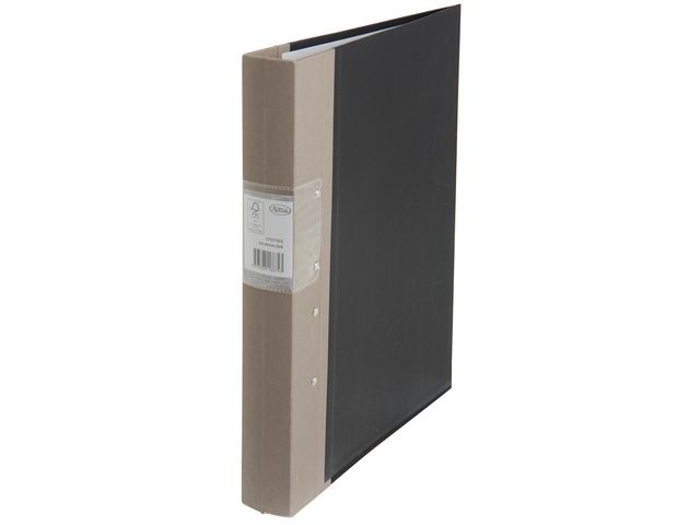 FSC-märkt svart träryggspärm med grå tygklädd rygg MDF-skiva för en mer stabil och stadig pärm. MDF-skivan är tillverkad av minst 30% återvunnet trä. Hög mekanisk kvalitet med ergonomisk trycknapp och livstids funktionsgaranti på mekanismen. Svensk hålning. FSC-certifierad Livstids funktionsgaranti på mekanismen Svensk hålning A4