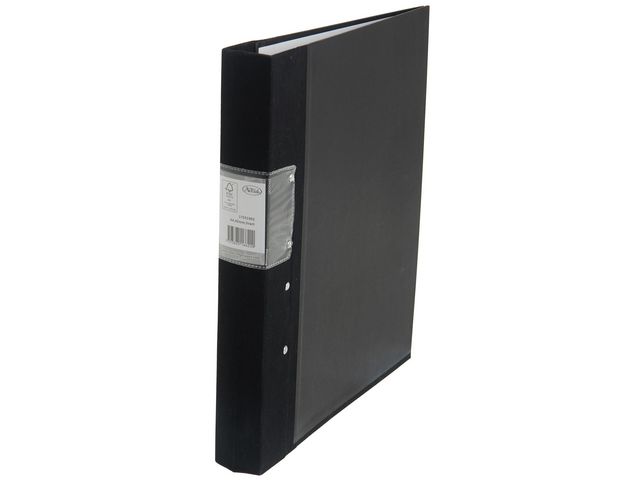 FSC-märkt svart träryggspärm med svart tygklädd rygg MDF-skiva för en mer stabil och stadig pärm. MDF-skivan är tillverkad av minst 30% återvunnet trä. Hög mekanisk kvalitet med ergonomisk trycknapp och FSC-certifierad Livstids funktionsgaranti på mekanismen Svensk hålning A4