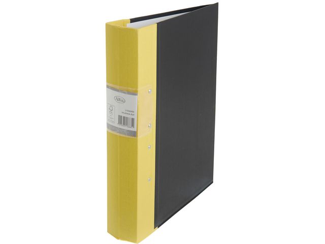 FSC-märkt svart träryggspärm med gul tygklädd rygg MDF-skiva för en mer stabil och stadig pärm. MDF-skivan är tillverkad av minst 30% återvunnet trä. Hög mekanisk kvalitet med ergonomisk trycknapp och livstids funktionsgaranti på mekanismen. Svensk hålning. FSC-certifierad Livstids funktionsgaranti på mekanismen Svensk hålning A4