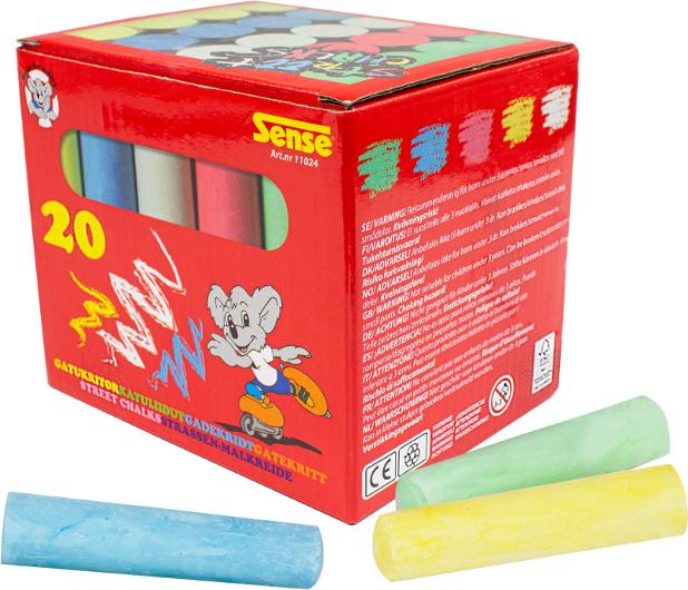 Lekfull sommaraktivitet som inspirerar till fantasi, rörelse och kreativitet. Pigga upp skolgården, gårdsplanen eller trottoaren med dessa färgstarka gatukritor. Kritorna levereras i en praktisk pappask med bärhandtag, behandlad med en glansig yta som ger ett visst skydd mot väta – perfekt för både förvaring och transport. Låt barnen rita hopphagar, mönster, figurer och egna fantasivärldar direkt på asfalten. Och bäst av allt: alla kritmärken försvinner enkelt med vatten, så kreativiteten kan flöda fritt om och om igen. Antal: 20/fp Material: Gips, pigment Papperskartong av FSC certifierat papper CE