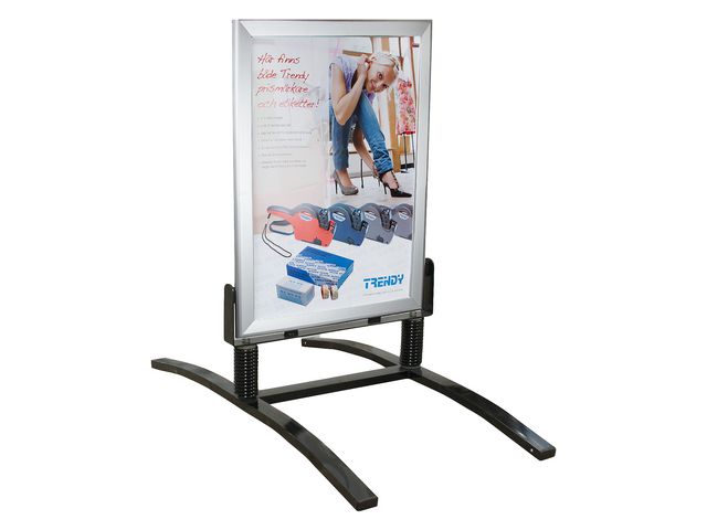 Gatuställ i format 70x100cm (arkformat). Ramen sitter monterad på fjädrar vilket gör att stället är mindre vindkänsligt än andra ställ. Levereras med frontplast. Ett stabilt gatuställ som passar bäst utomhus men som givetvis även går att använda inomhus. Mått: 70 x 100cm (arkformat) Aluminiumram: 45mm Kraftiga svarta metallfötter/ben
