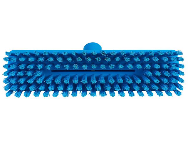 Tvättborste med vattengenomlöpning. Denna golvskrubb har en mycket effektiv vattendistribution och är perfekt för användning i hårt nedsmutsade områden såsom slakterier och köttberedningsanläggningar. Material: polypropylen polyester, rostfritt stål Längd: 27 cm Bredd: 7,5 cm Höjd: 10 cm Livsmedelsgodkänd