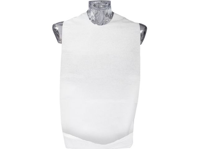Engångshaklapp för vuxna. Används för att minimera risken för korskontaminering för vårdpersonal och användare genom att absorbera kroppsvätskor och livsmedel. Haklappen är med tejpapplikation och vändbar ficka. Detta säkerställer att fickan förblir öppen för att fånga upp mat och vätska och förhindra spill. Tejpfästet ger en mer flexibel placering av haklappen, vilket gör den idealiskt för sängliggande användare och det går att behålla ögonkontakten vid applicering. Genom den absorberande ytan och vätsketäta baksidan förblir kläderna under torra och rena. Med tejp samt vändbar ficka. Produkten är CE-märkt. Färg: vit Icke-steril Engångs Material: PE, vävnad Mått: 37 x 70 cm 2 lager CE-märkt