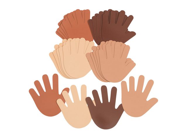 Händer I kartong med 4 olika hudtoner. Dekorera med tyg, papper, pärlor, paljetter, glitter. Antal: 24st händer Mått: 19 cm x 16,5 cm Material: Kartong PVC-fri