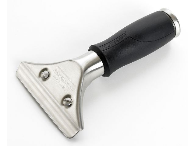 Ergonomiskt gummihandtag. Lätt att byta skena på. Borstad rostfri stål. Passar även till Teleskopskaften.