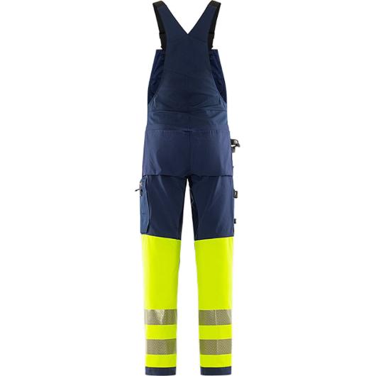 Varselcertifierade hängslebyxor i 4-vägsstretch för snickare, anläggare och industrimontörer Dessa miljödeklarerade hängslebyxor kombinerar maximal rörelsefrihet med hög slitstyrka och god synlighet. Tillverkade helt i 4-vägsstretch med stretchpaneler i midjan och förstärkningar på utsatta områden för att tåla tuffa arbetsförhållanden. Materialet består av delvis biobaserade och återvunna fibrer för att minska miljöpåverkan, bekräftat genom EPD. Material: Stretchmaterial 44% PTT (delvis biobaserat material), 44% polyester, 12% återvunnen polyester. Ripstop stretchmaterial 87% polyamid, 13% elastan. Vikt: 260 g/m2 Certifieringar: EN 14404, EN ISO 20471, EN 13758-2 Tvättråd: Kan maskintvättas i maxtemperatur 60°C, normalt program Oeko-Tex Standard 100: Ö 97-055 RISE, www.oeko-tex.com