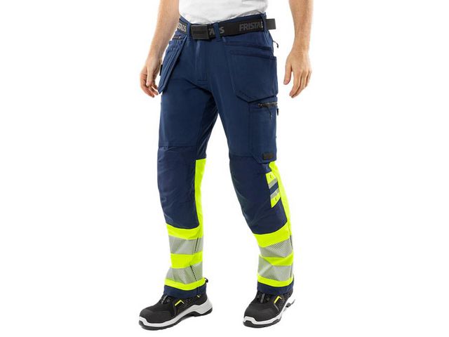 Miljödeklarerade varselbyxor i 4-vägsstretch. För hantverkare, elektriker och installatörer Högpresterande och miljödeklarerade varselbyxor i hantverkarmodell, utformade för dig som behöver rörlighet, slitstyrka och synbarhet i arbetet. De är tillverkade i ett lätt och följsamt 4-vägsstretchmaterial av delvis biobaserat och återvunnet tyg, med förstärkningar där det slits som mest. Stretchpaneler i midjan ger extra rörelsefrihet och komfort under hela arbetsdagen. Material: Stretchmaterial 44% PTT (delvis biobaserat material), 44% polyester, 12% återvunnen polyester. Ripstop stretchmaterial 87% polyamid, 13% elastan. Vikt: 260 g/m2 Certifieringar: EN 14404, EN ISO 20471, EN 13758-2 Tvättinformation: Kan maskintvättas i maxtemperatur 60°C, normalt program Oeko-Tex Standard 100: Ö 97-055 RISE, www.oeko-tex.com