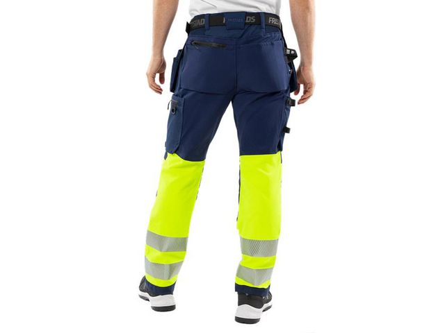 Miljödeklarerade varselbyxor i 4-vägsstretch. För hantverkare, elektriker och installatörer Högpresterande och miljödeklarerade varselbyxor i hantverkarmodell, utformade för dig som behöver rörlighet, slitstyrka och synbarhet i arbetet. De är tillverkade i ett lätt och följsamt 4-vägsstretchmaterial av delvis biobaserat och återvunnet tyg, med förstärkningar där det slits som mest. Stretchpaneler i midjan ger extra rörelsefrihet och komfort under hela arbetsdagen. Material: Stretchmaterial 44% PTT (delvis biobaserat material), 44% polyester, 12% återvunnen polyester. Ripstop stretchmaterial 87% polyamid, 13% elastan. Vikt: 260 g/m2 Certifieringar: EN 14404, EN ISO 20471, EN 13758-2 Tvättinformation: Kan maskintvättas i maxtemperatur 60°C, normalt program Oeko-Tex Standard 100: Ö 97-055 RISE, www.oeko-tex.com