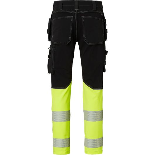 Hantverksbyxa i 4-vägsstretch med varseldetaljer. Modern hantverksbyxa med hög rörelsefrihet tack vare ett smidigt 4-vägs stretchmaterial och förböjda ben. Utrustad med slitstarka knäfickor i CORDURA® och flera praktiska förvaringslösningar, inklusive spikfickor och benficka med dragkedja. Reflexdetaljer baktill ger ökad synbarhet vid arbete i miljöer med varierande ljusförhållanden. Ett robust val för professionella hantverkare som behöver funktion, flexibilitet och tålighet i vardagen. Huvudmaterial: 94% polyamid, 6% spandex, 270 g/m2 Kontrasttyg: 92% polyester, 8% spandex, 210 g/m2 EN ISO 20471 klass 1 4-vägsstretch CORDURA®-förstärkta knäfickor Spikfickor och benficka med dragkedja Förböjda ben Tvättråd: Kan maskintvättas i 40° normaltvätt Oeko-Tex Standard 100: SE 21-276 RISE, www.oeko-tex.com