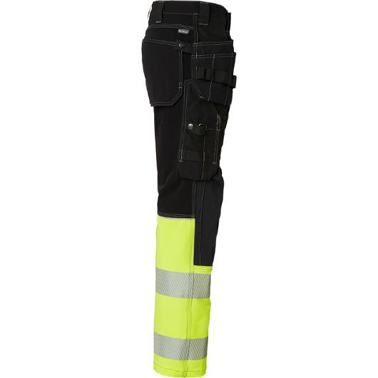 Hantverksbyxa i 4-vägsstretch med varseldetaljer. Modern hantverksbyxa med hög rörelsefrihet tack vare ett smidigt 4-vägs stretchmaterial och förböjda ben. Utrustad med slitstarka knäfickor i CORDURA® och flera praktiska förvaringslösningar, inklusive spikfickor och benficka med dragkedja. Reflexdetaljer baktill ger ökad synbarhet vid arbete i miljöer med varierande ljusförhållanden. Ett robust val för professionella hantverkare som behöver funktion, flexibilitet och tålighet i vardagen. Huvudmaterial: 94% polyamid, 6% spandex, 270 g/m2 Kontrasttyg: 92% polyester, 8% spandex, 210 g/m2 EN ISO 20471 klass 1 4-vägsstretch CORDURA®-förstärkta knäfickor Spikfickor och benficka med dragkedja Förböjda ben Tvättråd: Kan maskintvättas i 40° normaltvätt Oeko-Tex Standard 100: SE 21-276 RISE, www.oeko-tex.com