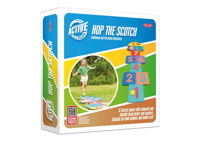 Ett klassiskt barnspel. Kasta markören på en plats och hoppa på plattorna för att hämta den. Färgglada skumplattor och markörer. Perfekt för både inomhus och utomhuslek. Storlek monterad lekmatta: ca 62 x 216cm Innehåll: 10 plattor gjorda av stötabsorberande EVA-skum, 4 markörer Rekommenderad ålder: från 3 år