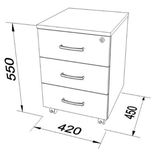 Hurts på hjul med centrallås Hurts på hjul med centrallås, där två unika nycklar följer med, samt pennfackslåda. Pennfacket är löst och kan lyftas ur för att använda lådan som en vanlig låda. Två av hjulen är låsbara. Lättrullade lådor med rullskenor och lådstopp. Hurtsen är gediget konstruerad. Hurtsen består av tre lika stora lådor. Materialet är stryktåligt laminat. Handtag i borstad aluminium. 18 mm rygg för att ytterligare stärka konstruktionen till en stabil hurts. Mått: 420x450x550 mm