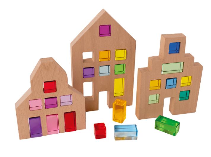 Hus i trä med sensoriska klossar 3 hus