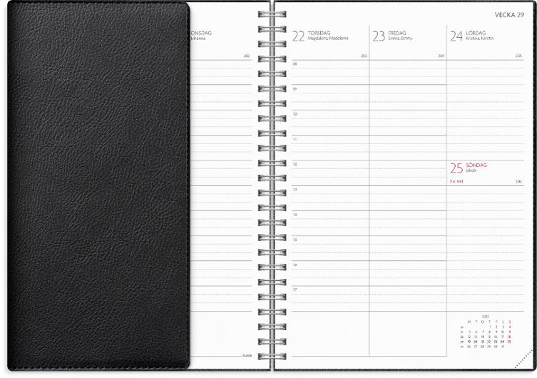 OBS! Almanackor för läsår 2026/2027 preliminär leverans fr.o.m. vecka 10! Study A5 är en praktisk kalender för den studerande. Med en stående layout samt timindelning 8-17 hjälper kalendern dig att behålla strukturen genom hela läsåret. Det finns även utrymme för att skriva upp årsplaner, scheman och provresultat för att lättare kunna reflektera över akademisk utveckling. För att underlätta organiseringen har Study även en praktisk förvaringsficka. Allt du behöver för ett framgångsrikt läsår! Omslaget Twist Svart har en len strukturerad skinnimitation med en användbar flärp som kan fungera som ett bokmärke för att enkelt förflytta dig i kalendern. Format: A5 Mått: 215 x 163 x 17 mm Layout: Vecka/uppslag, stående Timindelning 8-17 Kalendarium: 2026-06-01 - 2027-08-29 Omslag: Konstläder, spiralbunden Innehåll: Kyrkliga helgdagar, flaggdagar, helgdagar/aftnar, månfaser, namnsdagar, temadagar/händelser, årsplan/årsplaner, schema, provresultat Antal sidor: 176 Miljöinformation: FSC papper