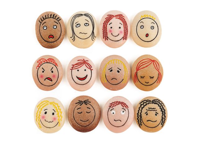 Att känna igen ansiktsuttryck och förstå känslor hjälper barn att kommunicera sina egna känslor och känna empati med andra. Denna vackert utformade uppsättning taktila stenar är graverade med ansikten som visar tolv vanliga känslor: glad, ledsen, arg, rädd, orolig, förvånad, förvirrad, uttråkad, lugn, stolt, himmel och generad.Gjutna av en unik blandning inklusive äkta sten, de är hållbara för användning i sand och vatten, inomhus och utomhus, vilket ger många möjligheter att utforska känslor i olika miljöer. Varje set innehåller tolv stenar Mått: 45 mm Rekommenderad ålder: från 2 år
