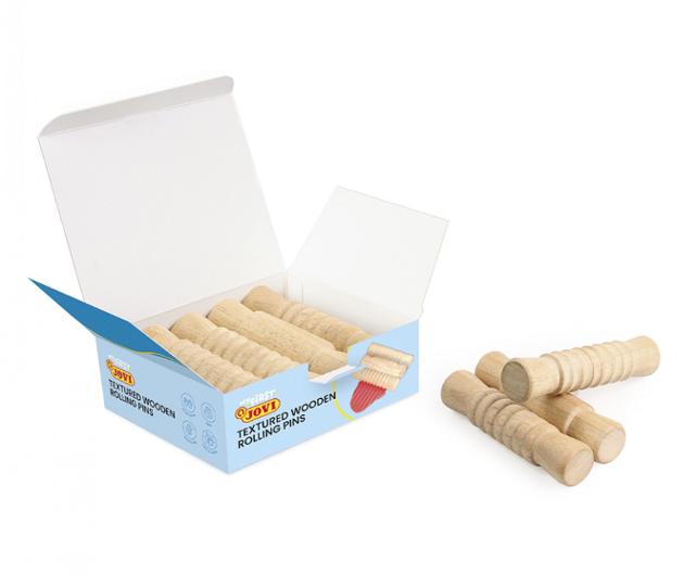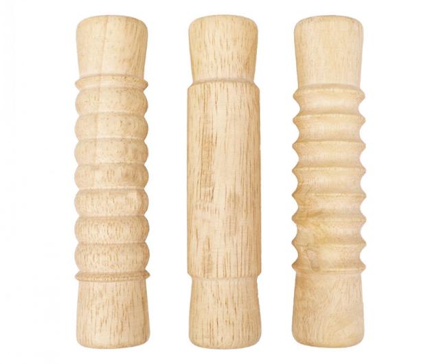 Upptäck träkavlar med tre olika motiv, perfekta för lek med babyplastilin och annan modellera. Kavlarna är designade för att stimulera barnets sinnen och göra det lättare för de minsta att skapa och experimentera med olika texturer. Med sin perfekta storlek kan barn från 1 år och uppåt öva på självständighet, finmotorik och kreativt skapande. Kavlarna är lätta att rengöra och återanvända, vilket gör dem långlivade. Antal: 9 kavlar med 3 olika mönster Material: Trä Rekommenderad ålder: från 1 år CE