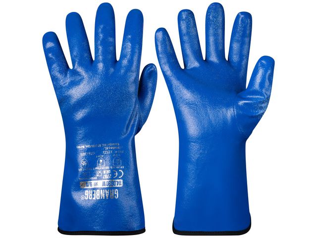 Varmfodrade nitrilhandskar lämpliga för vått arbete och kemikaliehantering, inom fiskeindustri, övrig livsmedelsindustri, tillverkningsindustri, jordbruk, oljeindustri, sanering och underhåll i kalla miljöer. Med god anatomisk passform för största möjliga komfort. Högt nötningsmotstånd ger slitstarka handskar. Godkända för användning i direkt kontakt med alla typer av livsmedel, inklusive livsmedel med hög fetthalt (EN 1186). Passar medeltungt till tungt arbete. Produkten är CE-märkt. Godkända enligt: EN 388:2016+A1:2018, EN 374-1:2016 Type B, EN 374-5:2016, EN 1186 Skyddskategori: III Tjocklek: Fleece + 0,8mm Livsmedelsgodkända Vattentät CE-märkt