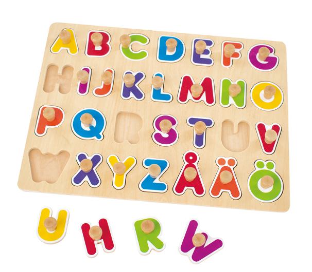 Utforska alfabetet på ett lekfullt sätt! Ett färgglatt pussel med bokstäverna A–Ö som gör språkinlärningen rolig och engagerande. Perfekt för att hjälpa barn att känna igen bokstäver och utveckla språklig medvetenhet. De robusta bitarna är enkla att greppa och placera, vilket gör aktiviteten idealisk för små händer. Antal bitar: 29 Mått: 29,8 × 22,3 cm Material: trä Rekommenderad ålder: från 3 år FSC 100%