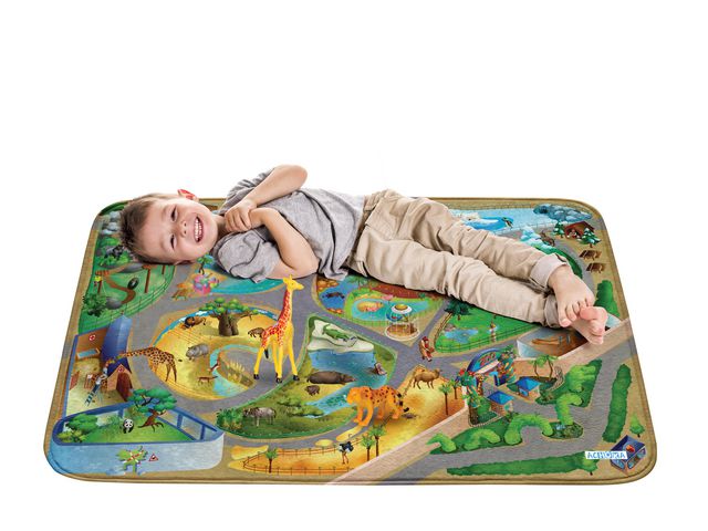Lekmatta tjock och mycket mjuk kvalite med gummerad undersida för att ligga stadigt på golvet. Mattan hjälper barnet att utveckla sin fantasi och motorik. Mått: 100x150 cm. Material: 100% polyester, ultra soft PVC-fri. Från 18 mån.