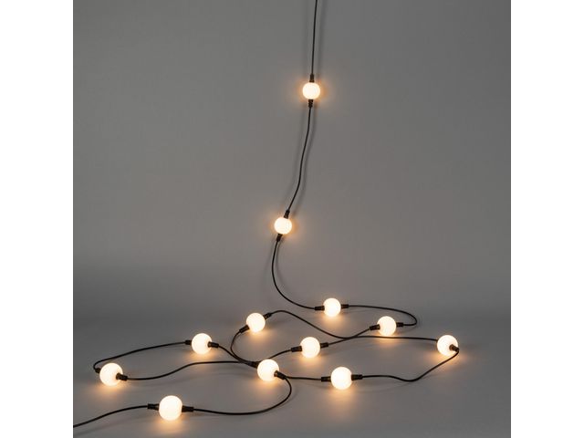 Skapa rätt känsla varje gång – med dimbar ljusslinga. Lys upp ditt hem, uteplats eller fest med ljusslinga Opal - en elegant ljuskälla som kombinerar funktion och design. Med sina 20 mjuka LED-lampor sprider den ett behagligt, varmvitt sken som skapar en inbjudande atmosfär – året runt. Lämplig för både inomhus- och utomhusbruk. Tack vare den inbyggda dimmern kan du enkelt justera ljusstyrkan efter behov. Gör slingan längre med tilläggset i samma serie. Totallängd: 1727 cm Slinglängd: 627 cm Antal lampor: 20 st Färg belysning: varmvit Kabelfärg: svart Dimmer inbyggd För inom/utomhusbruk Strömkälla: transformator