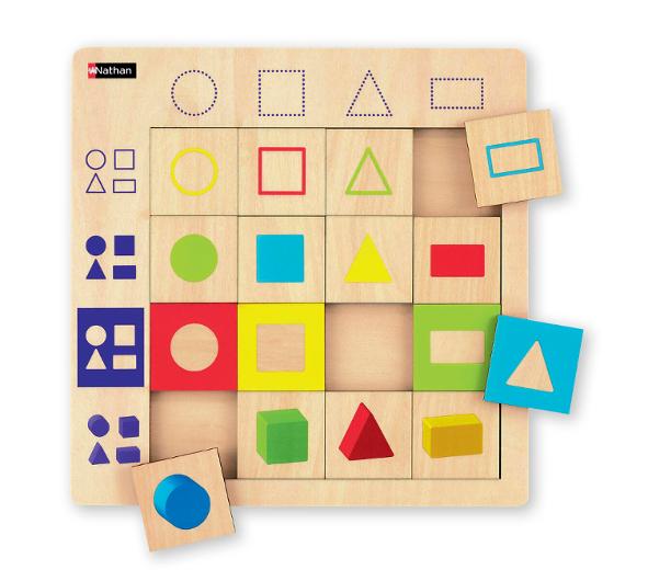 Utforska och lär känna geometriska former. Logikpussel Form är ett pedagogiskt och estetiskt träpussel som introducerar barn för olika geometriska former på ett lekfullt och visuellt tydligt sätt. Med 16 träbrickor som alla representerar olika former tränas barnen i formigenkänning, visuell sortering och tidig geometrisk förståelse. Brickorna placeras i en stabil träram, vilket gör pusslet både hållbart och perfekt för återkommande användning i förskola, skola och hemmiljö. Pusslets tydliga design hjälper barnen att se skillnader och likheter mellan former – en viktig grund för matematik och logiskt tänkande. Mått: 21 x 21 x 0,7 cm Material: trä Ingående råvara FSC-märkt PVC-fri Rekommenderad ålder: från 3 år