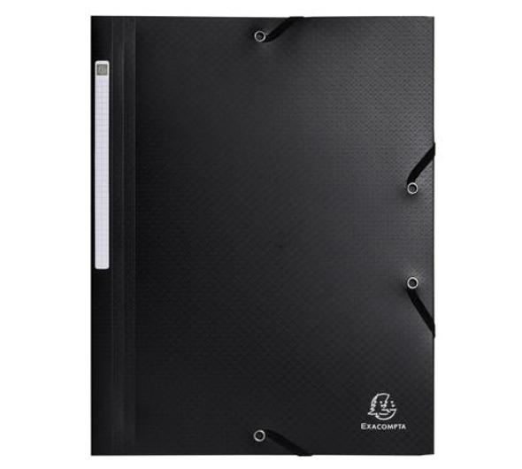 Opak-mapp från Exacompta, en praktisk 3-fliksmapp med elastiska band som håller innehållet säkert på plats. Tillverkad av matt, strukturerad polypropen (PP) som är tålig mot fläckar och repor, vilket gör den lämplig för daglig användning. Det opaka materialet skyddar innehållet från insyn, och ryggetiketten gör det enkelt att identifiera och organisera dokument. Gjord för A4-format. A4-format Färg: svart Material: PP Blue Angel 97% Post consumer återvunnen plast