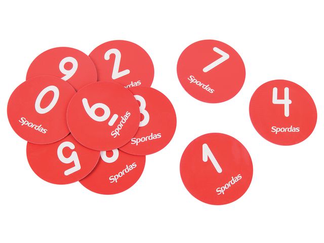 Små runda markörer numrerade från 0 till 9. Perfekta att använda som måltavlor för sporter som bordtennis eller som markörer för aktivitetsstationer. Låt dessa färgglada markörer addera extra glädje och lekfullhet till din träning eller aktivitet! Material: TPR med en halkfri yta på baksidan Rekommenderad ålder: från 2 år