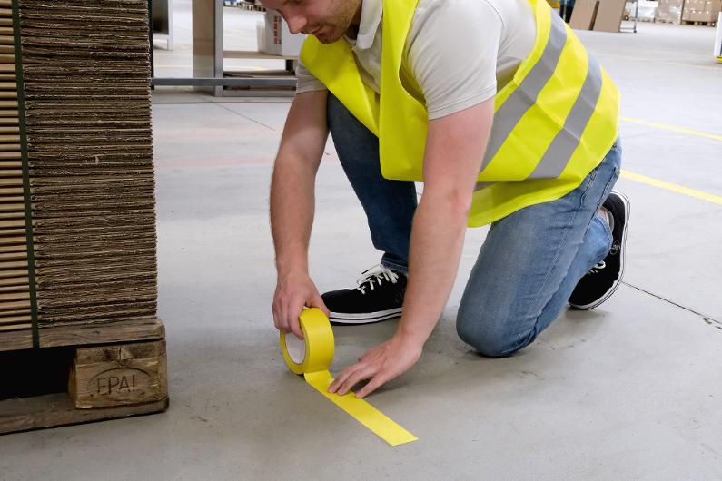 Anpassningsbar och självhäftande markeringstejp för inomhusbruk, för markering av golv eller föremål. Tejp för att uppmärksamma och märka fasta eller tillfälliga föremål och ytor. Underlaget måste vara slätt, stabilt, rent, fett- och dammfritt. Häftämnet av gummilim gör den mjuka PVC tejpen formbar samt lätt att fästa och ta bort. Mått: 50 mm x 33 m Tjocklek: 0,16 mm Färg: gul Material: PVC Avtagbar