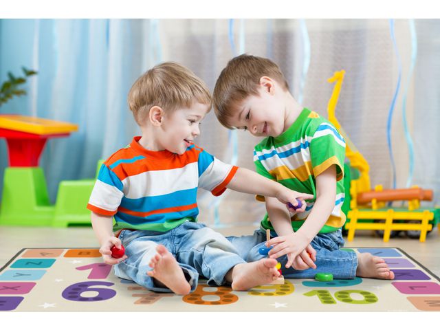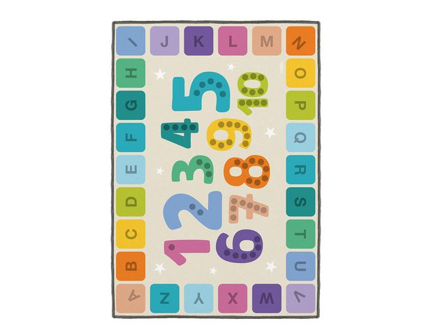 Samlingsmatta med bokstäverna A-Z och siffrorna 1-10 i glada färger. Pedagogisk matta där barnen på ett aktivt sätt kan lära sig känna igen bokstäverna, Mått: 200x300cm Material: 100 % polyester PVC-fri.
