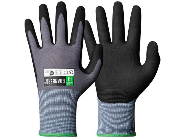 Montagehandskar lämpliga för lätt till medeltungt arbete inom montering, transport, underhåll, industri, anläggning och lager. Med utmärkt nötningsmotstånd kombinerat med fingerkänsla och ventilerande egenskaper. Nitrilskumbeläggningen stöter ifrån sig vatten och olja och frilägger greppytan för ett enastående torr- våt- och oljegrepp. Skyddar mot kontaktvärme upp till 100°C i 15 sekunder. Sanitized®-behandlade för att förhindra bakterietillväxt och för att ge en fräsch känsla samt Oeko-Tex certifierade. Godkända enligt: EN388:2016 4131X, EN 407:2004 X1XXXX Oeko-Tex Standard 100: 2020OK0876 AITEX. www.oeko-tex.com CE Skyddskategori: II Material: ytterhand: nylon Material innerhand: nitril Touch screen kompatibla Storlek: 11