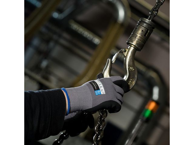 Montagehandskar lämpliga för lätt till medeltungt arbete inom montering, transport, underhåll, industri, anläggning och lager. Med utmärkt nötningsmotstånd kombinerat med fingerkänsla och ventilerande egenskaper. Nitrilskumbeläggningen stöter ifrån sig vatten och olja och frilägger greppytan för ett enastående torr- våt- och oljegrepp. Skyddar mot kontaktvärme upp till 100°C i 15 sekunder. Sanitized®-behandlade för att förhindra bakterietillväxt och för att ge en fräsch känsla samt Oeko-Tex certifierade. Godkända enligt: EN388:2016 4131X, EN 407:2004 X1XXXX Oeko-Tex Standard 100: 2020OK0876 AITEX. www.oeko-tex.com CE Skyddskategori: II Material: ytterhand: nylon Material innerhand: nitril Touch screen kompatibla Storlek: 8